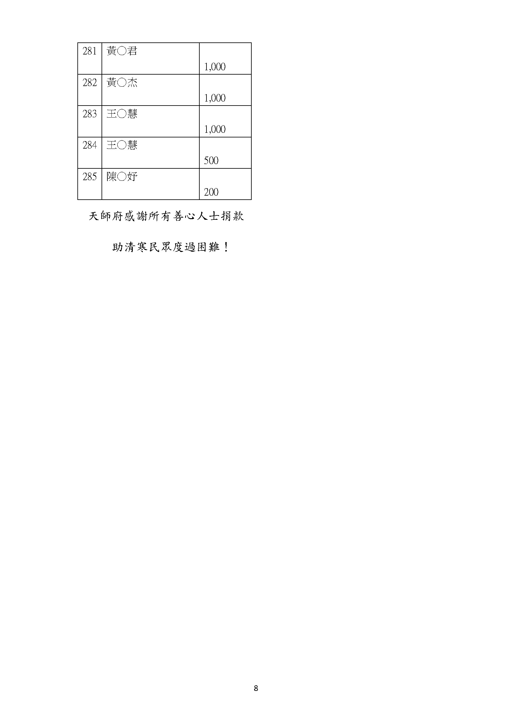 2025年11月份捐款張天師府清寒喪葬補助共285筆(累計58,861筆)