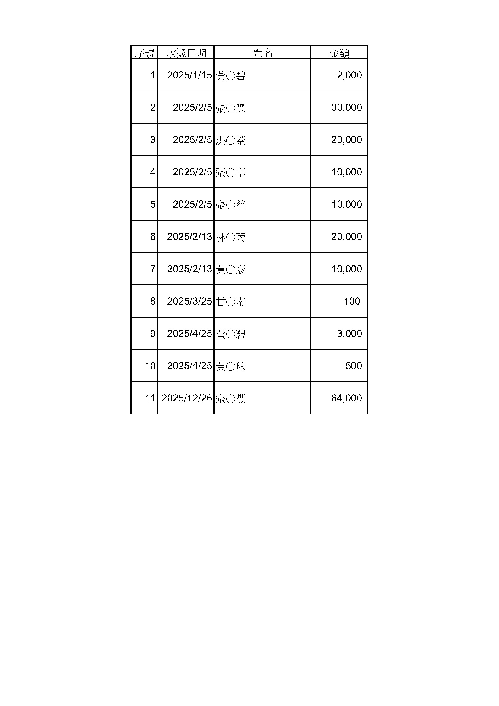 感謝眾善信大德,捐款贊助孝行獎推廣,名單如下