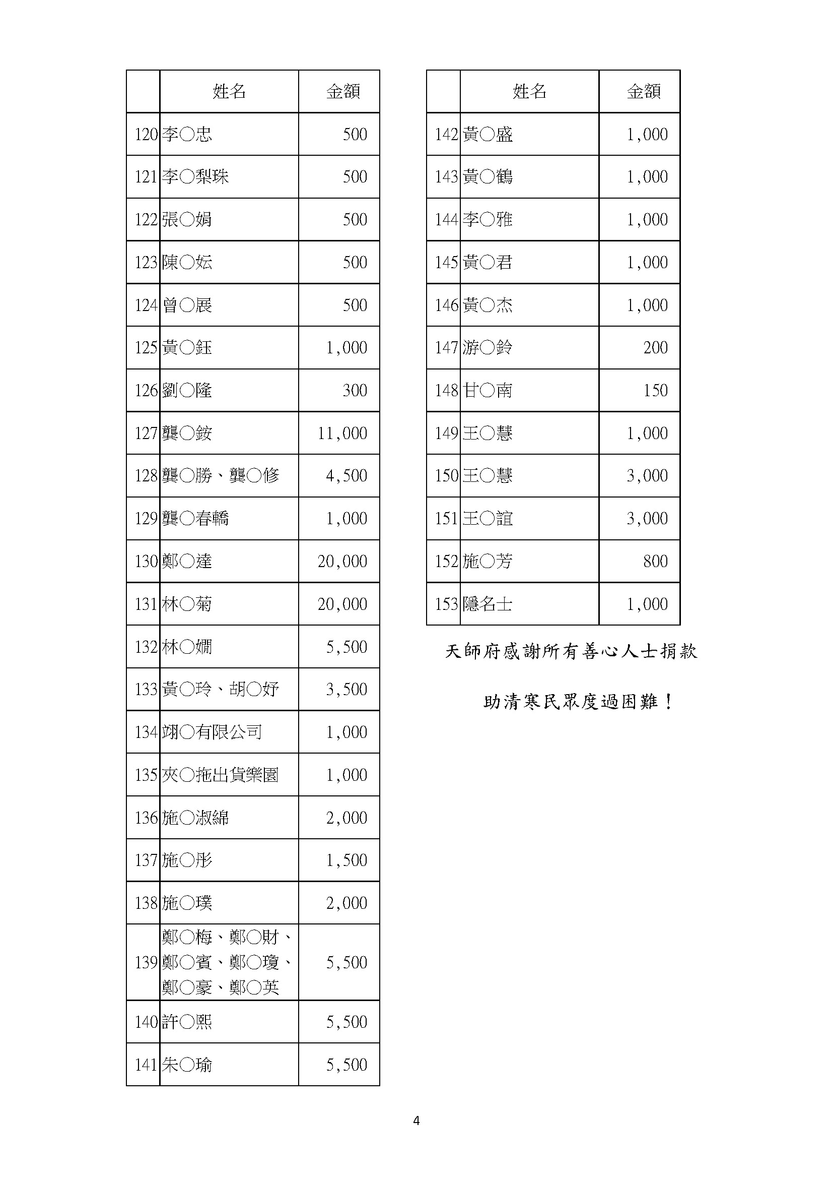 2026年2月份捐款張天師府清寒喪葬補助共153筆(累計59,393筆)
